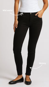 The Jennie Mid-Waist Skinny is a timeless Jean, without pocket flaps. Offered in a variety of colors for effortless everyday style.