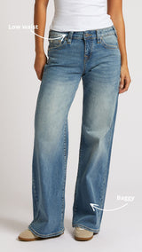 The Bobbi Low Waist Baggy Jean, with a clean look and no pocket flaps. A timeless style made modern in a range of colors.