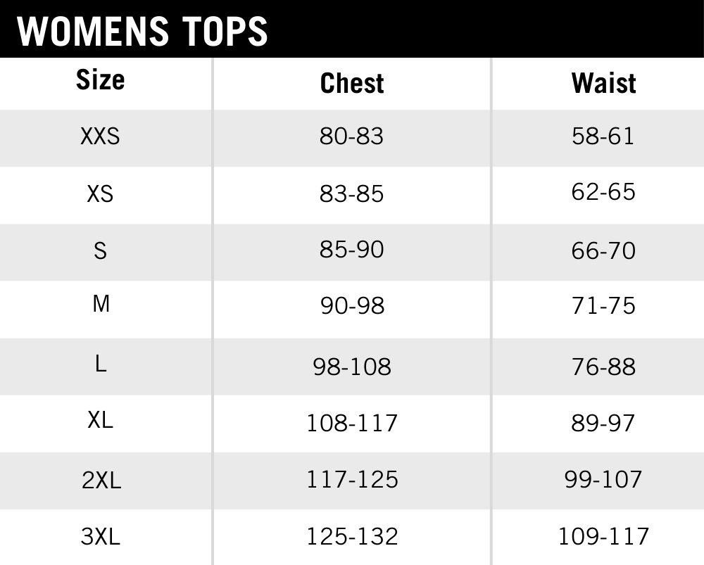 Our size charts are intended to be a general guideline. All measurments are in centimeters.